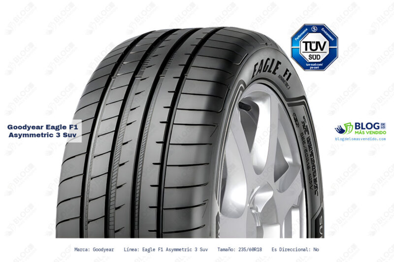 En definitiva, el Goodyear Eagle F1 Asymmetric 3 SUV representa una opción sólida para quienes buscan un neumático de alto rendimiento, duradero y seguro para su SUV o camioneta. Su equilibrio entre tecnología, manejo y resistencia lo hace una elección recomendable para conductores exigentes que valoran la calidad y la seguridad en cada viaje.